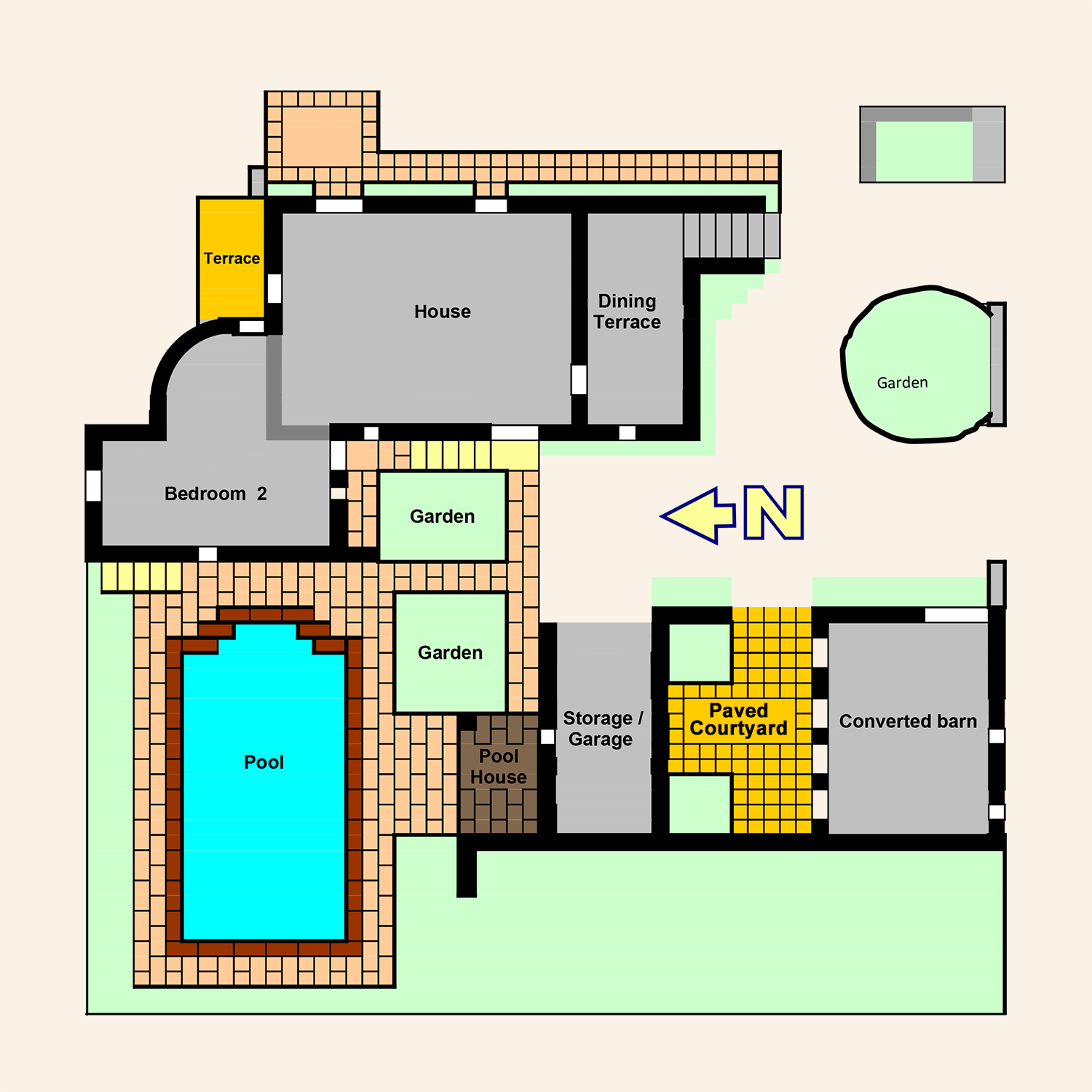 - The pool enjoys direct sunlight all day long. It is surrounded by a paved terrace for sunbathing, commanding wide views over the surrounding countryside. Sun-loungers.