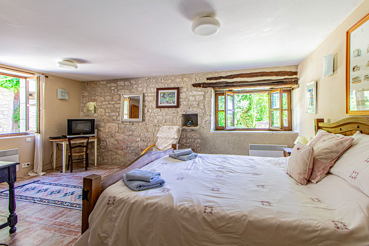 The lively and popular historic town of Montcuq is two miles off, and Cahors, the regional centre, is reached in 40 minutes. The River Lot is one of the loveliest in France.