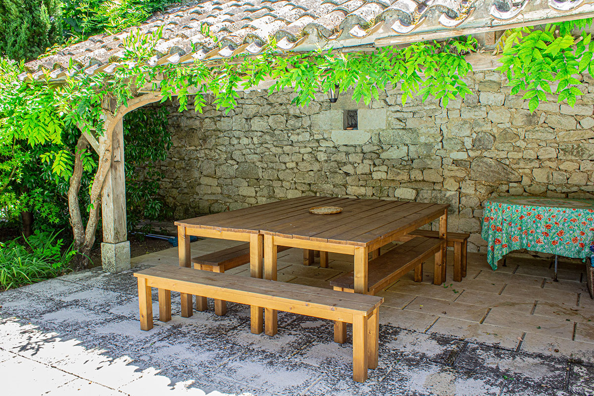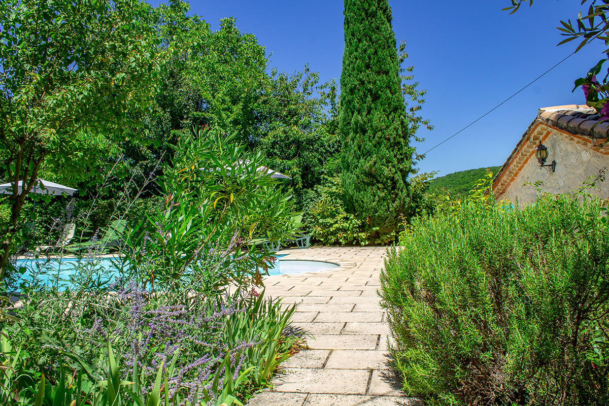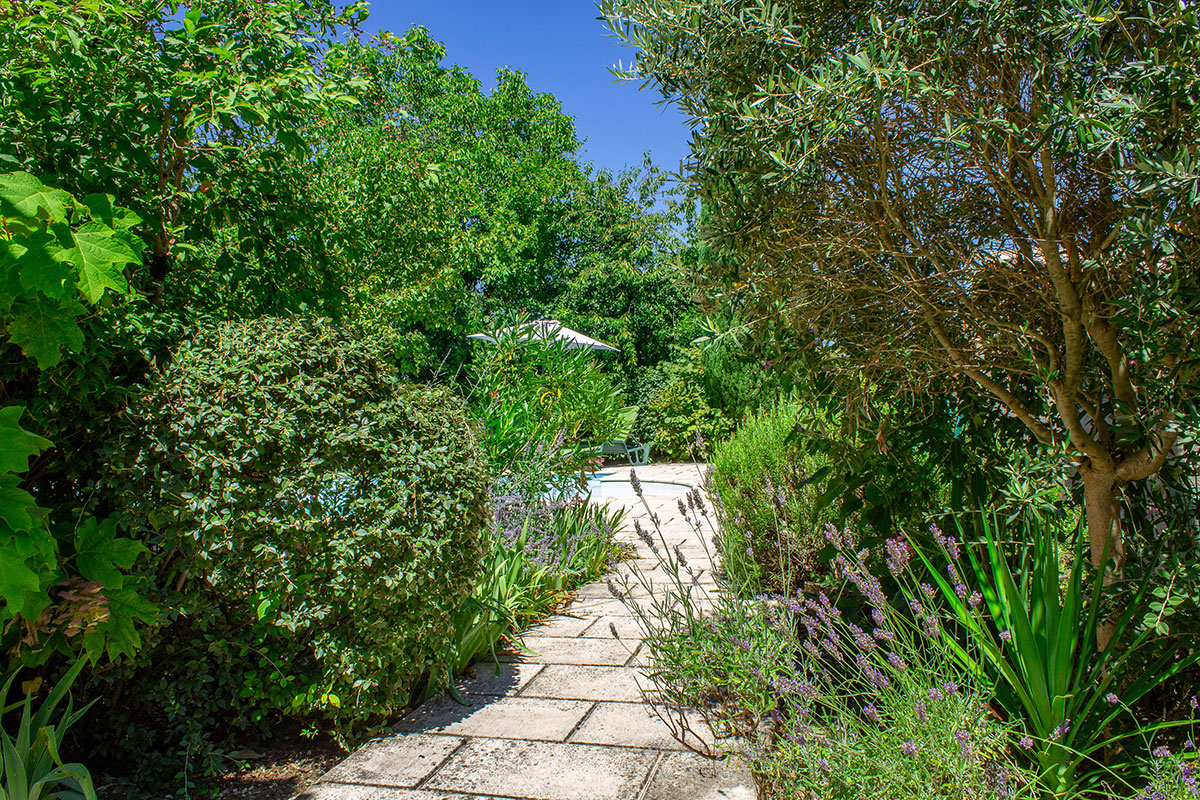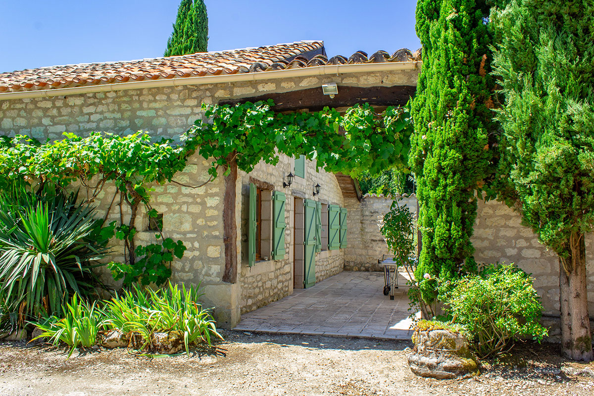 pool-house with BBQ - Garden with shade, fruit trees, vines